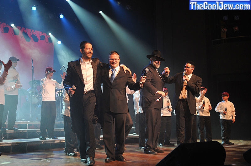 Yossi Tyberg, Shlomie Gertner, Gershy Moskowitz, and Yossi Green Backstage after the show