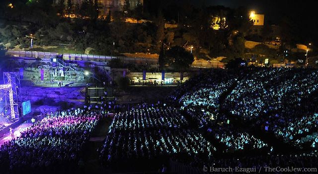 Avraham Fried performed last night in Yerushalayim Ir HaKodesh to a sell out crowd in Sultan’s Pool Auditorium. The last time a singer with a long beard was the main act at this venue was when Matisyahu performed here over Sukkos. This was an evening that celebrated Avremel’s achievement of 30 Years singing Jewish music—and he did not disappoint the diverse crowd that ranged from—Secular, Lubavitch, Litvishe, Mizrachi—every type of Jew was present to reminisce with Avraham Fried and to enjoy the surprisingly cool summer night! Throughout the evening, as Avraham Fried sang songs throughout the decades, the theme was clear—he wanted to inspire his audience to remain conscious of the Geulah, Moshiach, and The Beis HaMikdash.