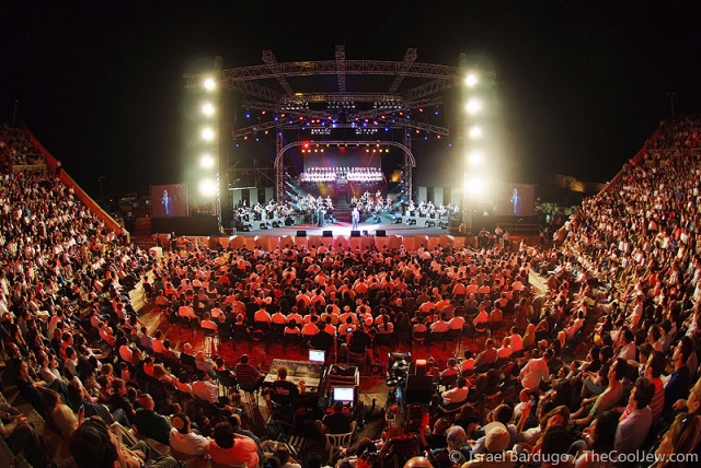 For the past two nights Yaakov Shwkey returned to Caesarea for his third performance. Israeli star Chaim Yisreal and Chazan Itcheh Meir Helfgot also made appearances. Boruch Levine and Achaniu made a surprise appearance at the show to join him. Shwekey has already performed at Caesarea and last night he did it again, produced by Yochi Briskman. During the show he sang two new songs, kol mevaser, composed by Yitzi Waladner, and a second Avinu Malkanu by Boruch Levine. A 60 man orchestra took care of all the music which was accompanied by 100 kids singing in the background. Shwekey sang songs from his newest album titled Li Bimzrach. Special credit goes to Daniel Grant who produced the event. If you missed the show last night dont worry a DVD will be soon to follow. Watch out for that over the next few months in the mean time check out these photos done for TheCoolJew.com by Israel Bardugo and Mendy Hechtman.