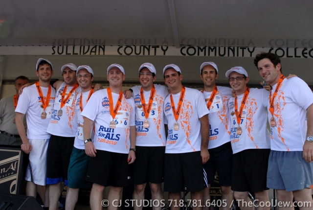 Monticello, NY - A concert took place in front of hundreds Thursday afternoon to mark the finish Line of The Jrunners 2010. Camps, bungalow colonies, and familes came far and wide to see the 2010 Jrunners pass the finish line. Music was by Evenal Orchestra and featured Lipa Schmeltzer, Eitan Katz, Shea Rubenstein, Dovid Stein, Shloime Dachs, Eli Beer and Mendy Worsch. As featured in Emunah Magazine: The first-ever Jewish runners club, JRunners, was recently founded in Brooklyn by three 30-ish Brooklynites, Steven Friedman, Matt Katz and Saul Rosenblum, family men and professionals who love to run. What they love even more is running for good causes—so when a neighbor contracted ALS, a severe degenerative disease also known as Lou Gehrig’s disease, they put together a non-profit organization to bring Jewish runners together to raise money for charity. Their tag line is “We Run for Those Who Can’t!” and their first race was for the benefit of that ALS family. Each runner raised a minimum of $1,000 and was given tools to help him accomplish that goal. It took 10 teams of 10 runners through some of the most scenic (and Jewish) areas of the United States and take approximately 22 hours to complete. It’s split into 30 legs and each runner completes three legs, running a total of 12 miles. Teams were provided with RV vehicles equipped with restrooms, beds, and showers between the various exchange points. MORE VIDEOS WILL BE RELEASE OVER THE NEXT WEEK.